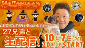 【生配信】10月7日(火)よる8時頃から生配信!10月は楽しいハロウィン企画🎃新作グッズも続々登場!? 27兄弟とまったり生配信🐶🐱
